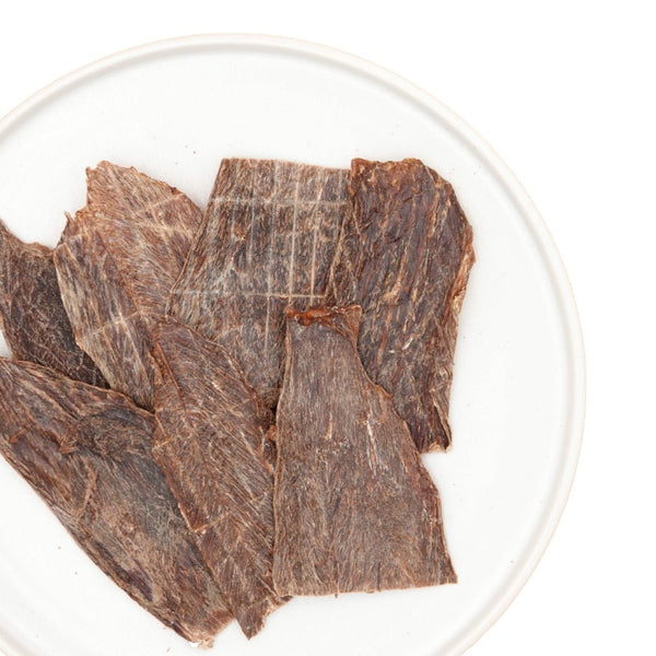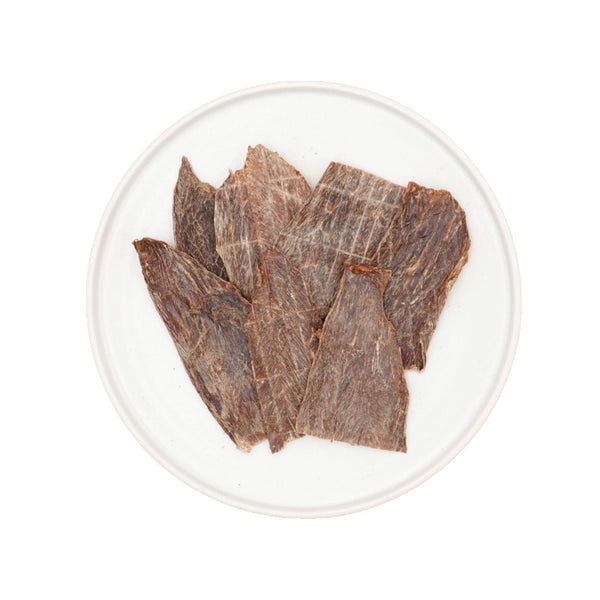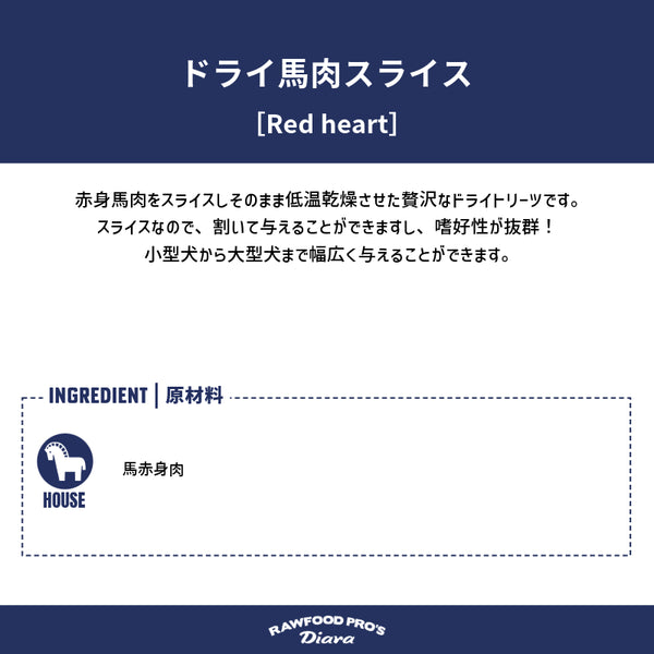 新鮮な赤身馬肉をスライスし、そのまま低温で丁寧に乾燥させた贅沢なドライトリーツです。