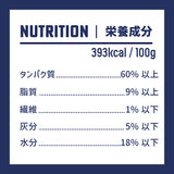 【原材料】馬赤身肉、馬ハツ、馬レバー、馬肺、馬脾臓、馬腎臓、馬軟骨、馬骨、海藻粉、醗酵野菜類、醗酵果実類(*) (*) * 醗酵野菜:カブ・キャベツ・キュウリ・小松菜・大根・トマト・ニンジン・パセリ・ブロッコリー・ホウレンソウ・モヤシ・レンコン、 * 醗酵果物:パイナップル・リンゴ・レモン・パパイヤ・ブルーベリー・ブラックベリー・ハックルベリー・ボイセンベリー・ブラックカラント、 * その他:キダチアロエ・ブドウ糖