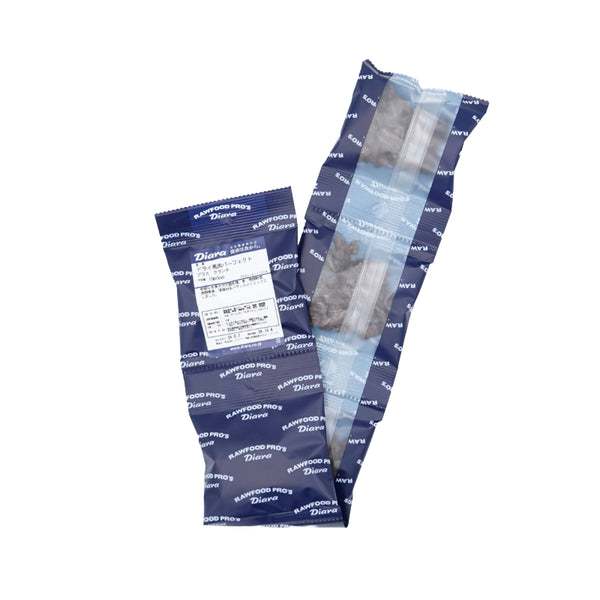 馬肉のミンチに新鮮な内臓類と生骨のミンチをバランスよくミックスし、食物繊維となる海藻粉、タンパク質分解を促す醗酵フルーツや野菜などをプラスした「馬肉パーフェクトプラス」を乾燥させたディアラの定番ドライトリーツです。