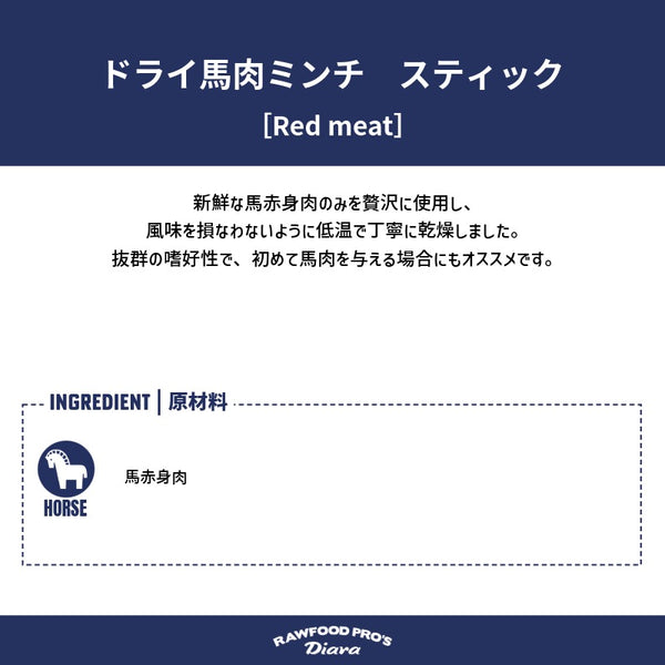 新鮮な馬赤身肉だけを贅沢に使用し、風味を損なわないよう低温で丁寧に乾燥しました。