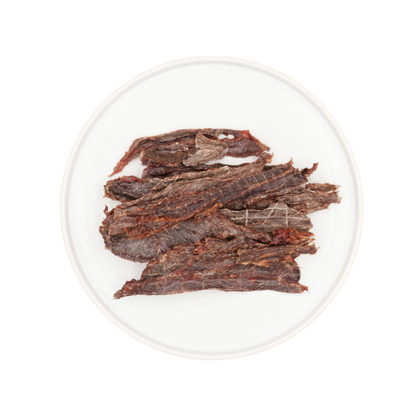 一頭からわずかしか取れない希少部位「ほほ肉」をスライスし、低温でじっくり乾燥させました。